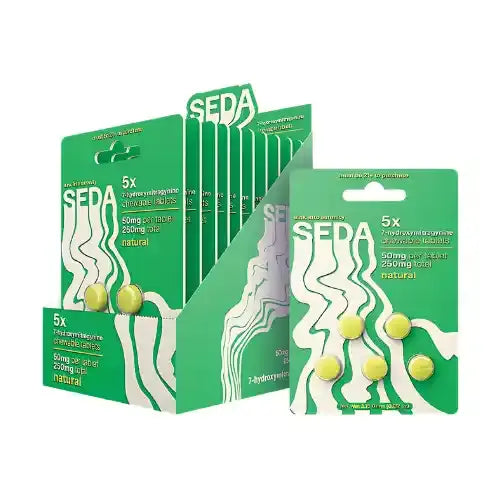 Choose SEDA’s boldly flavored, chewable 7OH tablets. 50mg each.